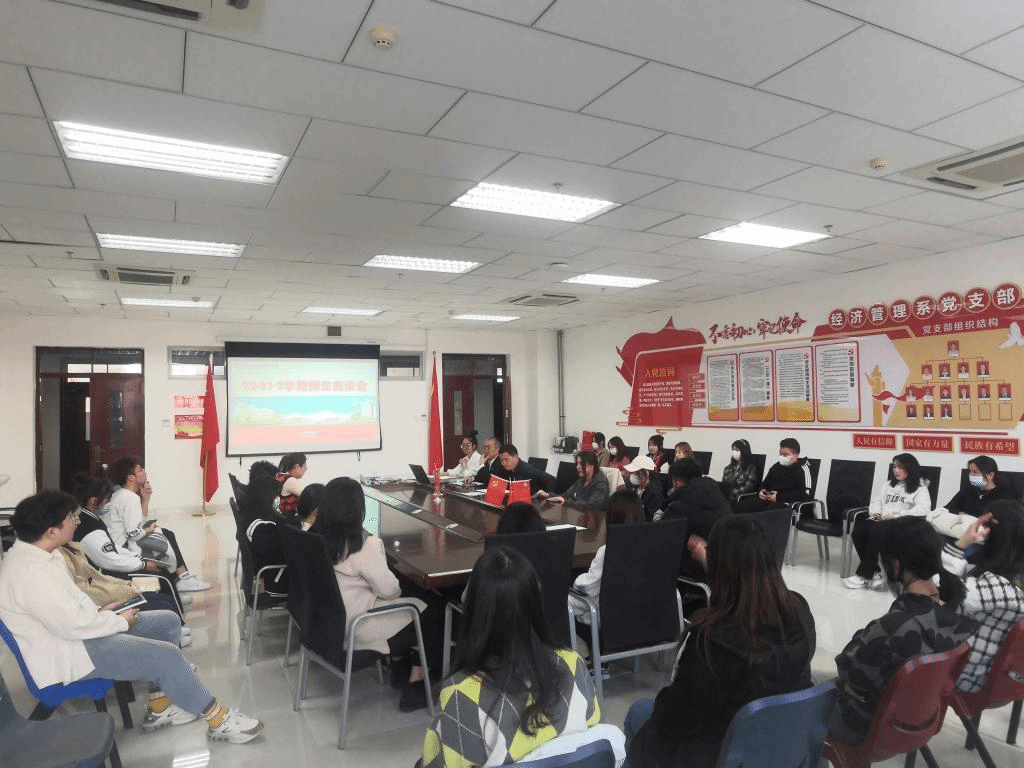 2023年3月10日,在经济管理分院会议室,我系组织在校学生代表和分院领导、辅导员召开师生座谈会。