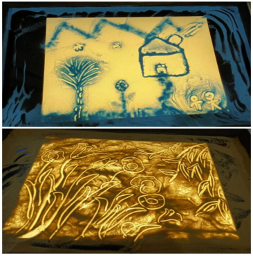学生创作的沙画作品
